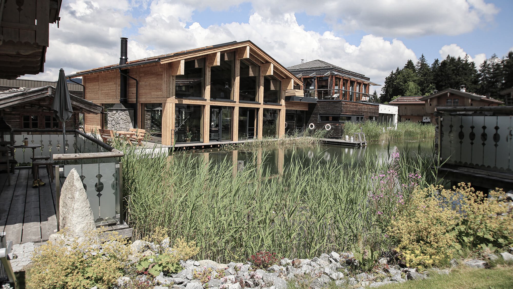 Der Holzduft der 11 exklusiven Chalets mit Private Spa bringt die Gedanken zur Ruhe und an kühlen Abenden genießt man das knisternde Feuer des Kamins. Der private Wellnessbereich mit frei stehender Lifestyle-Badewanne, finnischer Sauna und geschütztem Frischluftbereich verspricht die ersehnte Erholung. Aber auch die Annehmlichkeiten des INNs HOLZ Wellnessresorts – von der Vitaloase mit beheiztem Indoorpool bis zum Naturspa 16+ mit Saunawelt, Whirlpools, verschiedenen Ruheräumen und wunderbaren Behandlungen* stehen Ihnen als Chalet-Gast uneingeschränkt zur Verfügung.