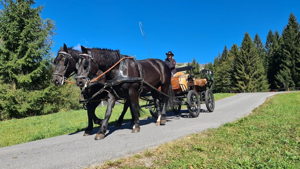 Auf 1000 Metern Seehöhe lassen Sie sich von zwei schwarzen Norikern durch die idyllische Landschaft kutschieren. Besonders geeignet sind die vom INNs HOLZ organisierten Kutschenfahrten durch das Mühlviertel also auch für Tierfreunde.