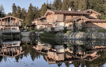 Im INNs HOLZ stehen auch 11 exklusive Luxus-Chalets mit Private Spa zur Verfügung, die Ihren Golfurlaub in Oberösterreich in einen Golfurlaub der Extraklasse verwandeln. Auf einer weitläufigen Waldlichtung im nördlichen Mühlviertel gruppieren sich die Chalets rund um den INNs HOLZ See und versprühen herzliche Alm-Atmosphäre. Eingebettet in die idyllische Natur des Böhmerwaldes genießen unsere Gäste die perfekte Balance zwischen exklusiver Gastfreundschaft und privater Ruhe im eigenen luxuriösen Refugium. Bei diesem Golfurlaub in Oberösterreich verschmilzt der Komfort eines Hotels mit der Privatsphäre eines eigenen Zuhauses. Jedes Chalet verfügt über einen privaten Wellnessbereich mit einer finnischen Sauna, Kamin sowie über eine frei stehende Lifestyle Badewanne. Auf der eigenen Sonnenterrasse oder im eigenen Frischluftbereich können Sie die frische Luft und die atemberaubende Landschaft genießen. Jedes Chalet bietet die ideale Atmosphäre für Ihren nächsten Luxus Golfurlaub im Mühlviertel. Neben dem privaten Wellnessbereich überzeugen die Chalets auch mit großzügigen Wohnbereichen, hochwertiger Ausstattung und mit moderner, aber gleichzeitig naturverbundener Einrichtung. Wenn Sie Ihre Golfurlaube in Oberösterreich mit absoluter Privatsphäre verknüpfen möchten, sind Sie im Golfhotel INNs HOLZ genau richtig. Morgens wird das Gourmetfrühstück direkt ins Chalet geliefert und der hoteleigene Lieferservice bringt kulinarische Köstlichkeiten gerne direkt ins eigene Luxus Refugium. Auf Wunsch können auch Massagen direkt im Chalet genossen werden. Für noch mehr Wellness und Entspannung steht der großzügige Wellnessbereich im angrenzenden INNs HOLZ Natur- & Vitalhotel****s zur Verfügung, der auch für Chaletgäste zugänglich ist. Dort können Sie sich im Indoorpool mit offenem Kamin, in der Panoramalounge mit Waldblick, in verschiedenen Saunen, im Aromadampfbad und in Whirlpools im Innen- als auch im Außenbereich entspannen. Unsere Chalets bieten die ideale Atmosphäre für einen luxuriösen Golfurlaub in Oberösterreich.