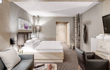 Das Golfhotel INNs HOLZ ist der ideale Rückzugsort für Ihren Golfurlaub in Oberösterreich. Sie wählen zwischen zwei verschiedenen Zimmerkategorien – Kategorie Alpenblick und Kategorie Moldaublick . Die komfortablen Zimmer sind geschmackvoll eingerichtet und bieten das ideale Wohlfühlambiente während Ihres Golfurlaubs im Mühlviertel. Lassen Sie sich von der traditionellen Gemütlichkeit überzeugen. Das Golfhotel im Böhmerwald überzeugt nicht nur mit stilvollen Zimmern, sondern auch mit hervorragender Kulinarik . Morgens können Sie beim reichhaltigen Frühstücksbuffet schlemmen und sich für den nächsten Tag Ihres Golfurlaubs in Oberösterreich stärken. Am Nachmittag genießen Sie feine Mehlspeisen, Tee und Kaffee. Nach einem sportlich aktiven Tag auf einem der besten Golfplätze in der Region servieren wir Ihnen am Abend ein exquisites 6-gängiges Menü. Mit frischen regionalen Zutaten zaubern die Küchenchefs des Golf und Wellnesshotels kulinarische Höhepunkte. In einem der beliebtesten Golfhotels Oberösterreichs genießen Sie neben exzellenten Gerichten auch ehrliche Gastfreundschaft und viel Liebe zum Detail. Während Ihrer Golfurlaube im Mühlviertel steht Ihnen auch der großzügige Wellnessbereich des Golfhotels zur Verfügung. Hier werden Golf und Wellness in Oberösterreich optimal verbunden. Das Golfhotel mit Wellnessbereich überzeugt mit seinem Indoorpool samt offenem Kamin und Waldblick-Panoramalounge, Whirlpools im Innen- und Außenbereich, verschiedenen Saunen inklusive der besonderen Bio-Heusauna, Infrarotkabine, Aromadampfbad und zahlreichen Liegemöglichkeiten, wo Sie Ihren Golfurlaub im Böhmerwald in vollen Zügen genießen können. Besonders hervorzuheben ist der große Spa-Ruheraum, in dem nach anspruchsvollen Stunden auf dem Golfplatz der Körper zur Ruhe kommt. Zusätzliche Entspannung liefert eine Massage oder eine Körperbehandlung , die die beanspruchten Muskeln lockert und sie optimal für den nächsten Tag Ihres Golfurlaubs im Mühlviertel vorbereitet. Besuchen Sie jetzt das Golfhotel INNs HOLZ, eines der besten Golfhotels Oberösterreichs, verbringen Sie Zeit auf den besten Golfplätzen der Region und genießen Sie Ihren Golfurlaub mit Wellness.